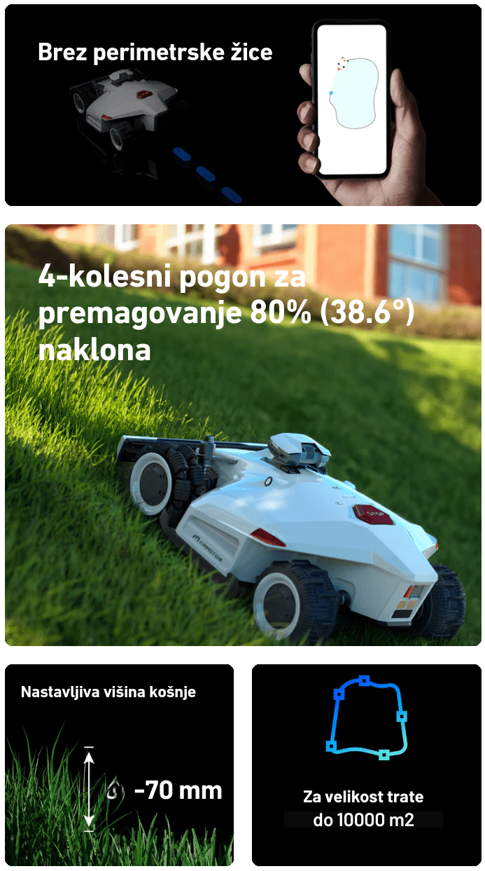 S povezljivostjo 4G/Wifi/Bluetooth lahko spremljate stanje LUBA robotske kosilnice in upravljate košnjo kadarkoli in kjerkoli prek aplikacije Mammotion.